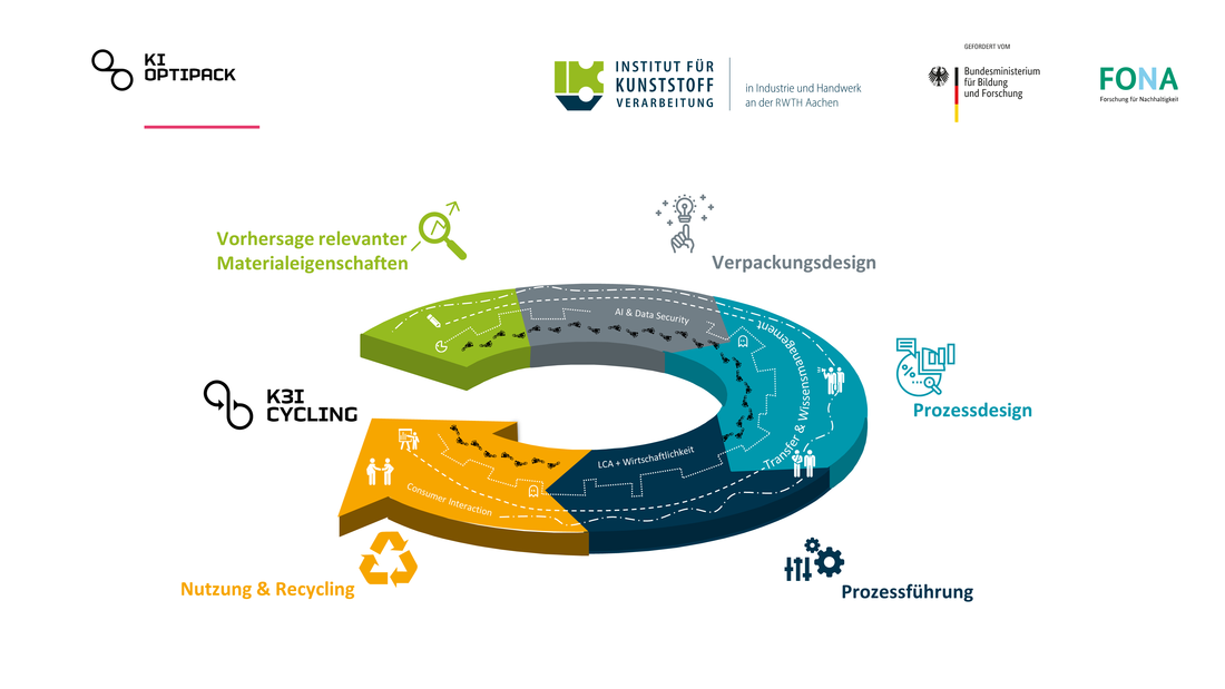 Im KI-Anwendungshub Kunststoffverpackungen arbeiten in den beiden Innovationslabor KI OptiPack und K3I-Cycling insgesamt 51 Partner aus Wirtschaft, Wissenschaft und Gesellschaft eng zusammen. Die Koordination des Projekts lag beim Institut für Kunststoffverarbeitung an der RWTH Aachen.
