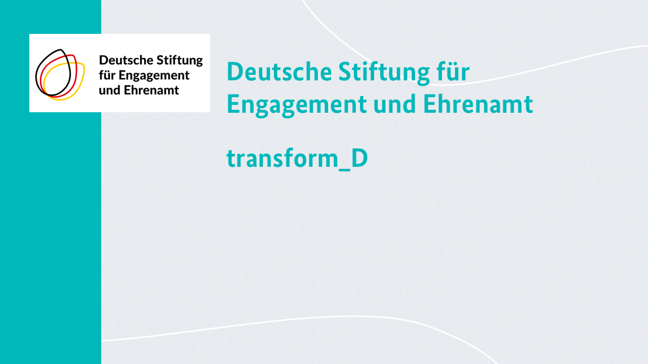 transform_D fördert neue Innovationsprojekte und die Erweiterungen bewährter Angebote zur Stärkung und Förderung von Innovationen im bürgerschaftlichen Engagement und Ehrenamt in den Themenfeldern Digitalisierung, Klimaschutz und Gesellschaftlicher Zusammenhalt und