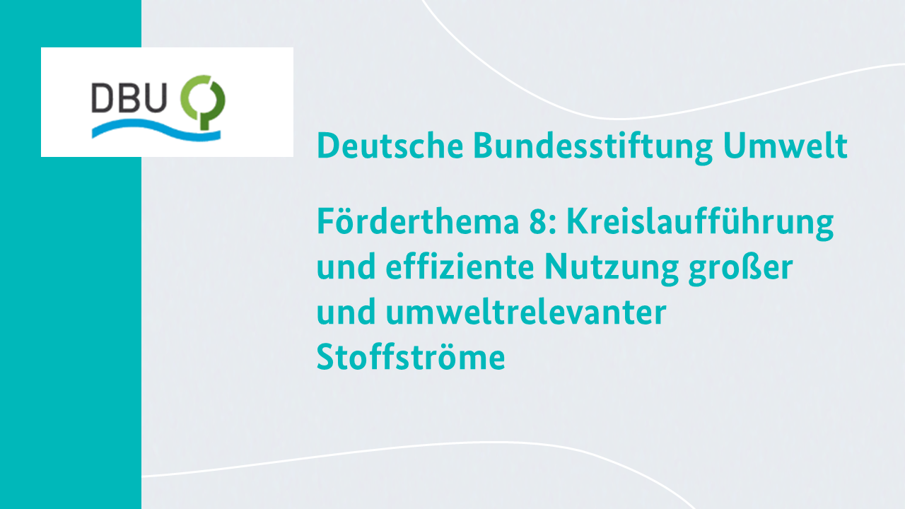 Die Deutsche Bundesstiftung Umwelt (DBU) fördert im Rahmen ihres Förderthemas 8 Technologieentwicklungen zur Steigerung der Nutzungseffizienz in Produktions- und Lieferketten sowie innovative wirtschaftlich tragfähige Geschäftsmodelle der Circular Economy. Gefördert werden Ansätze zur Inwertsetzung von Reststoffen aus Industrie, Landwirtschaft und Bauwesen, Smart-Farming-Lösungen und nachhaltige Eiweißquellen. Ergänzt werden diese durch modellhafte Kooperationen, Netzwerke und Bildungskonzepte, die umweltrelevante Kreisläufe schließen.