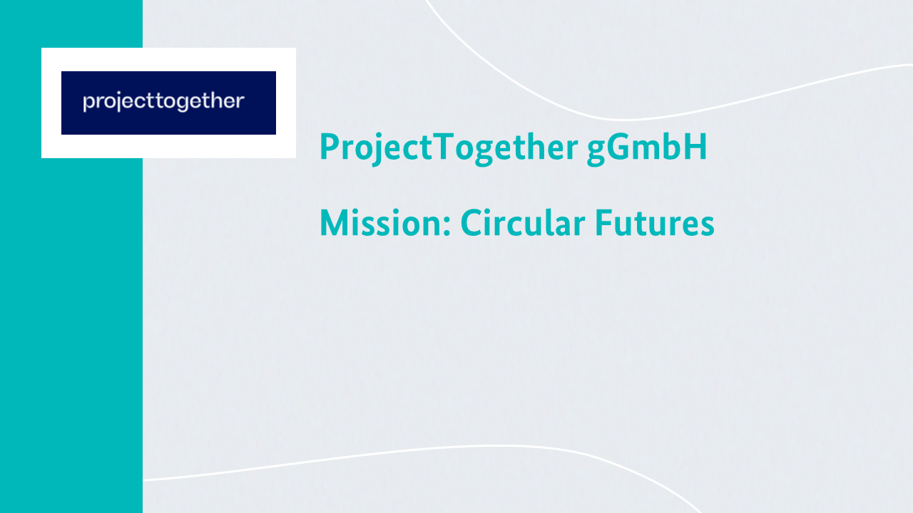ProjectTogether fördert und vernetzt seit 2021 über 110 zirkuläre Start-ups und zivilgesellschaftliche Initiativen. Die Mission fördert die Entwicklung neuer Materialien, zirkuläres Design, nachhaltige Geschäftsmodelle und innovative Technologien. Ziel ist die Ressourcenwende durch Abfallvermeidung, längere Kreisläufe, Regeneration natürlicher Systeme und faire Gestaltung.
